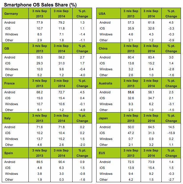 bombolosmart Posted October 29, 2014 Report Share Posted October 29, 2014 Gli ultimi dati di Kantar Worldpanel fotografano la situazione del mercato smartphone: Android continua a essere il sistema operativo mobile più diffuso al mondo superando il 70% in buona parte dei mercati presi in esame, mentre i nuovi iPhone 6 consentono a iOS di tornare a crescere. Windows Phone perde invece terreno, ma non in Italia. I numeri di Kantar, che fanno riferimento al trimestre conclusosi a Settembre,dicono che Android detiene attualmente il 74% del mercato smartphone dei cinque principali Paesi Europei (UK, Germania, Spagna, Francia e Italia), in crescita dell’1.4% rispetto allo stesso periodo del 2013. Il picco è in Spagna, dove il sistema operativo Google arriva addirittura al 90% del mercato. Cresce anche iOS, specialmente in Spagna e Gran Bretagna, mentre Windows Phone è in calo in Europa ma resta nettamente il secondo sistema operativo mobile preferito dagli italiani, staccando di quasi 5 punti iOS: il nostro Paese rappresenta una vera anomalia in questo senso. Negli USA, dove le vendite di smartphone sono aumentate del 35% rispetto allo scorso anno, ai buoni risultati dei soliti noti (Samsung, Apple e anche HTC) si sono aggiunti anche quelli diMotorola e LG, che hanno portato Android al 61%. Xiaomi guida l’armata del robottino verde in Cina, Paese da cui Windows Phone sta praticamente sparendo. Un vero stravolgimento sta interessando invece il mercato nipponico, dove Android ha preso il volo nell’ultimo anno staccando nettamente la concorrenza. fonte androidiani sembra che WP arranchi se non dire proprio non é molto considerato.... mah, mi convince sempre molto meno anche se amavo Windows Mobile all'epoca ma era un altro periodo Link to comment Share on other sites More sharing options...